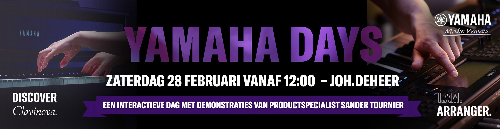 Op zaterdag 28 februari neemt productspecialist Sander Tournier je mee in de wereld van Yamaha’s Clavinova en I.AM.ARRANGER workstations. Beleef de kracht, muzikaliteit en veelzijdige mogelijkheden van deze instrumenten en laat je inspireren!