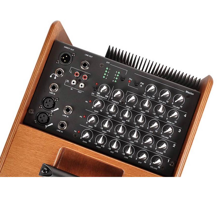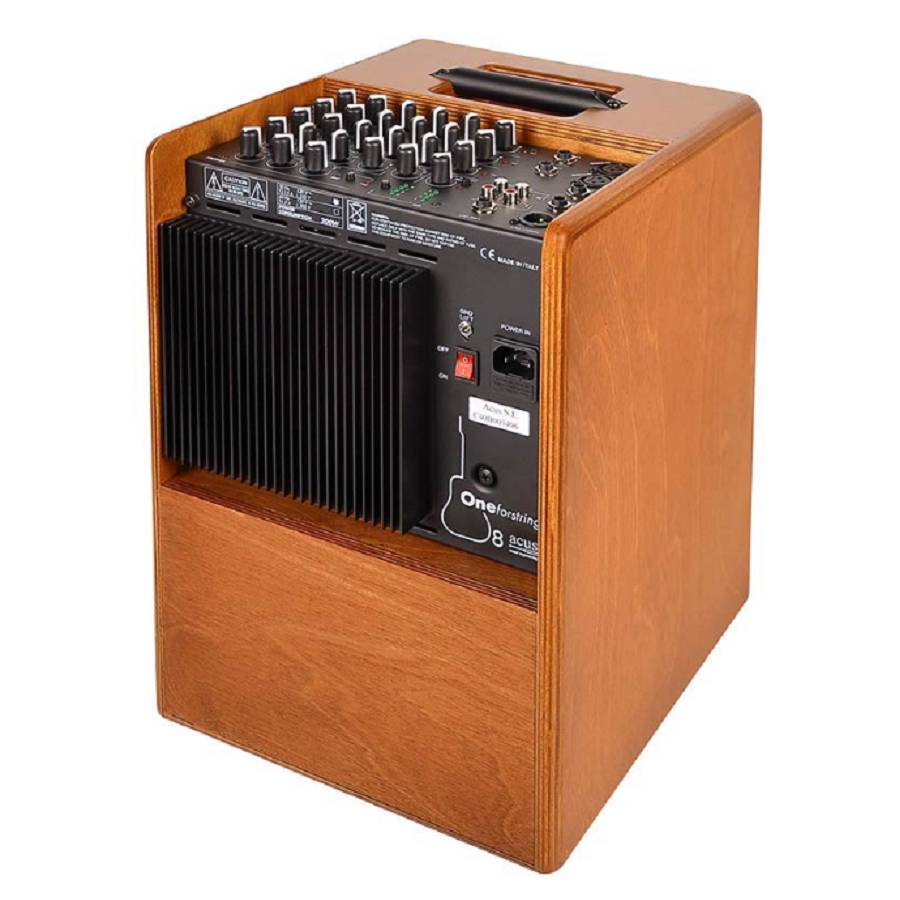 De Acus ONE-8 is een 200 Watt combo versterker voor akoestische instrumenten en zang. Een zeer veelzijdige versterker met 3 kanalen (2 x microfoon 1 x lijn), vierband toonregeling per kanaal, de keuze uit 8 verschillende digitale effecten. De veelzijdigheid van dit model wordt nog versterkt door de aanwezigheid van een AUX input met een eigen volume regelaar en een 2-Band EQ, 2 direct outputs (LINE en REC) en een resonance filter waarmee uit rondzingen kunt onderdrukken. De hoofdtelefoon uitgang met eigen volume regelaar en 8 hoogwaardige digitale effectende Acus One 8 helemaal compleet.