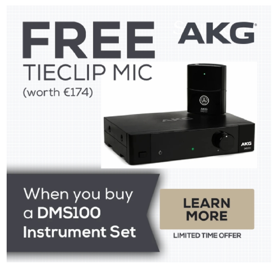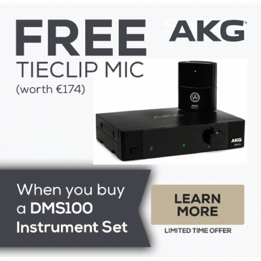 Bij aankoop van een AKG DMS100 Instrument Set profiteert u van een gratis AKG Tieclip Mic t.w.v. € 174,00. Hoe werkt het? Na aankoop van de DMS100 bij ons in de winkel of via onze website kunt u zichzelf registeren bij AKG en vervolgens het gratis instrument claimen. Dit doe je via: AKG Claim je product. Na de productclaim wordt het product door AKG naar je thuis gestuurd.