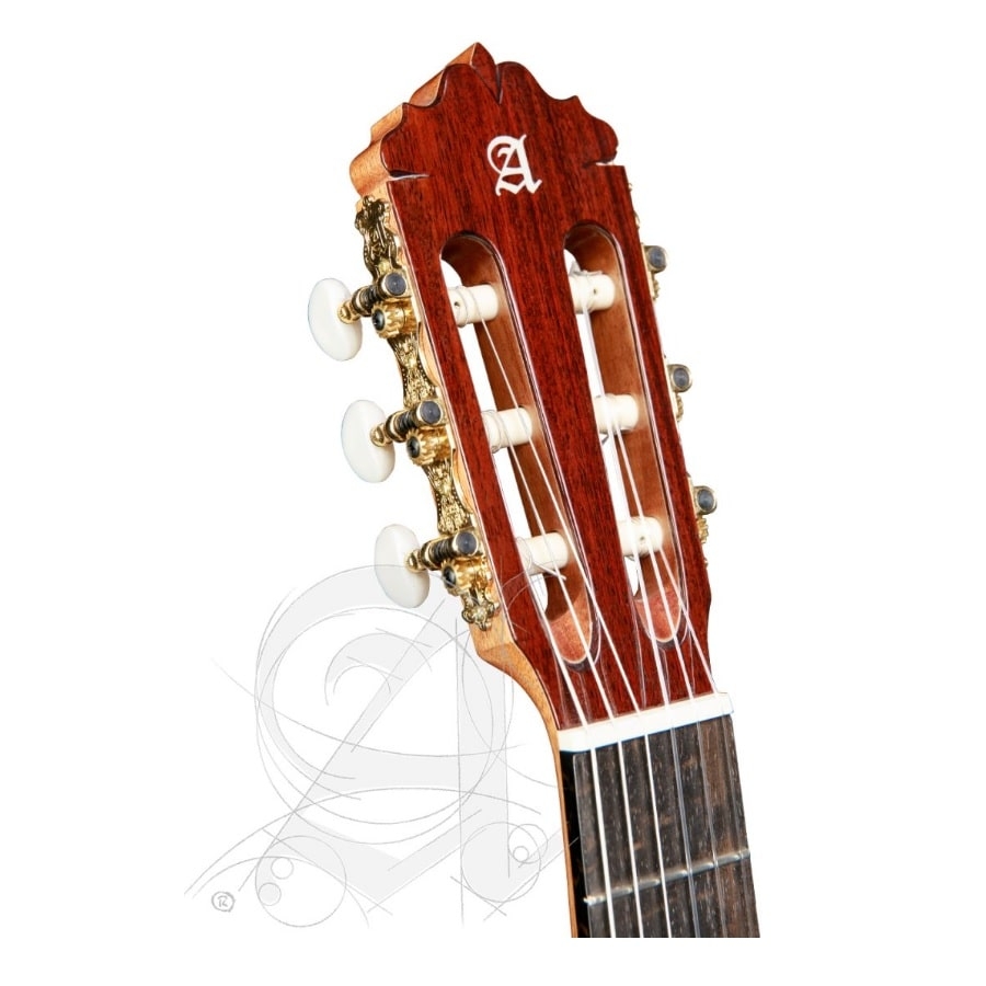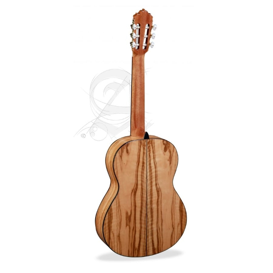 De 6 Olive is een opmerkelijke gitaar: de gitaar is namelijk van olijfhout gemaakt. Dit is redelijk zeldzaam, maar is een geweldige keuze voor een gitaar. Olijfhout klinkt namelijk helder en articuleert goed. Het benadrukt de midden en hoge tonen en heeft een geweldige projectie. Daarnaast heeft het ook een prachtig patroon omdat de olijfboom in een draaiende beweging groeit. Het bovenblad van de gitaar is van cederhout gemaakt, wat de gitaar een warmer geluid geeft. De hals is van samanguila gemaakt en de toets van ebbenhout. Kortom, de 6 Olive is een geweldige en unieke klassieke gitaar!