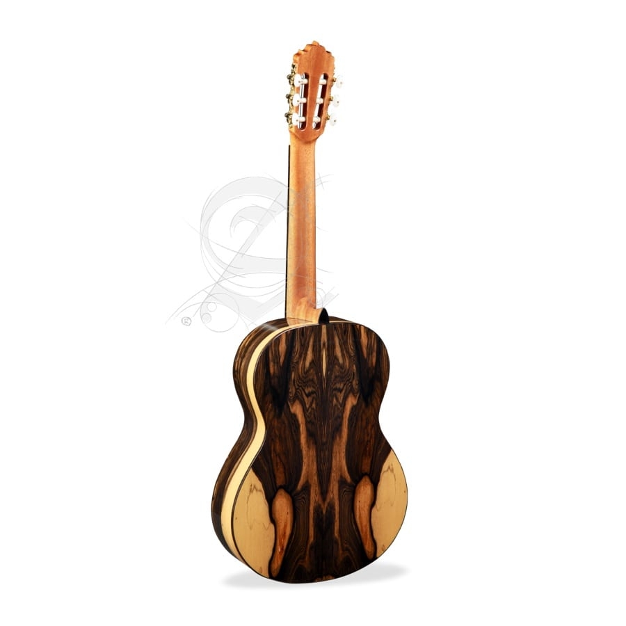 De 6 White Ebony is een geweldige klassieke gitaar van Alhambra. Deze gitaar heeft een uniek uiterlijk omdat de achter- en zijkanten van wit ebbenhout zijn gemaakt. Deze toonhoutsoort heeft een prachtig patroon wat per gitaar verschilt. Bovendien zorgt het ook voor een warm en gebalanceerd geluid. Het zorgt ook voor een mooi contrast tussen de lage en hoge tonen. Zodoende is de gitaar ook heel veelzijdig, waardoor de gitaar geschikt is voor klassieke stukken maar ook voor modernere stukken vanwege het warme geluid. Het bovenblad is van cederhout gemaakt wat ook voor een warmer geluid zorgt. De hals is van samanguila gemaakt en de toets van ebbenhout. Kortom, de 6 White Ebony is een prachtige veelzijdige gitaar!