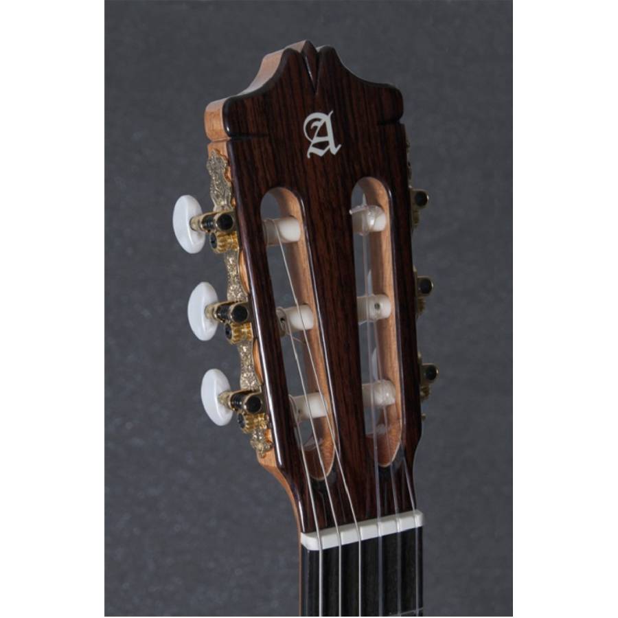 De hals van de gitaar is gemaakt van het veel gebruikte mahoniehout en is versterkt met een onzichtbare ebbenhouten versterking in de hals. Deze kwalitatieve zorgt voor een soepele bespeelbare hals die zeer consistent is over vele jaren. De toets van de gitaar is gemaakt van ebbenhout. De afwerking van de gitaar is zeer fraai en netjes en alle materialen zijn van A-kwaliteit zoals de gouden stemmechanieken. Een mooi rozet completeert deze uitmuntende klassieke gitaar.