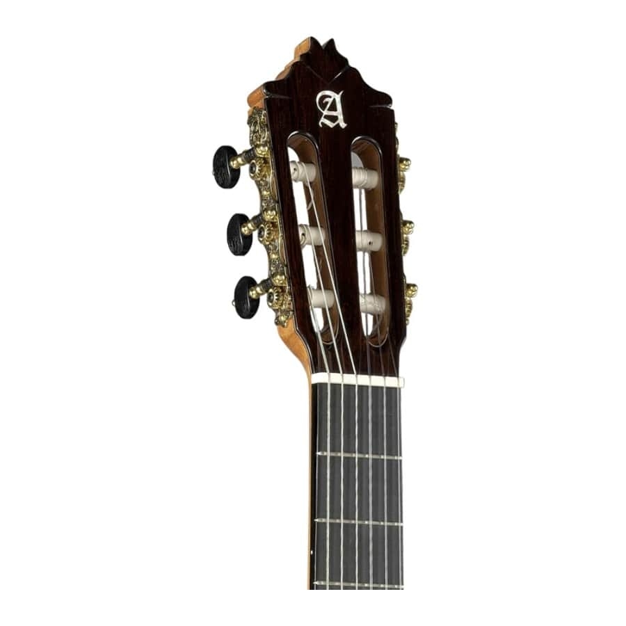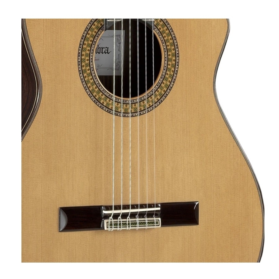 De 9 P CW E8 is een geweldige semi-akoestische klassieke gitaar. Ze hebben de toon van de gitaar geperfectioneerd met de specifiek geselecteerde massieve cederhouten bovenblad. Cederhout zorgt niet alleen voor een mooie warme toon, maar maakt het geluid ook expressiever en voegt helderheid toe aan het geluid. Daarnaast heeft de gitaar ook een massieve Indiase palissander achter- en zijkant wat nog meer diepte aan de toon toevoegt. De gitaar heeft een cederhouten hals dat verstevigd wordt door ebbenhout en een ebbenhouten toets. Zodoende is de gehele hals stabiel en comfortabel. De 9 P CW E8 heeft ook luxueuze gouden stemmechanieken wat niet alleen voor een geweldig uiterlijk zorgt maar ook voor een betrouwbare stemstabiliteit. De gitaar bevat ook Fishman FL11 elektronica waardoor het versterkte geluid wat de gitaar produceert ook nog zeer authentiek klinkt.