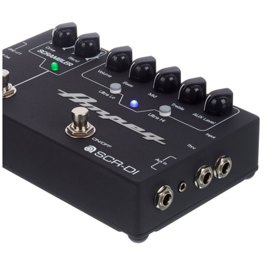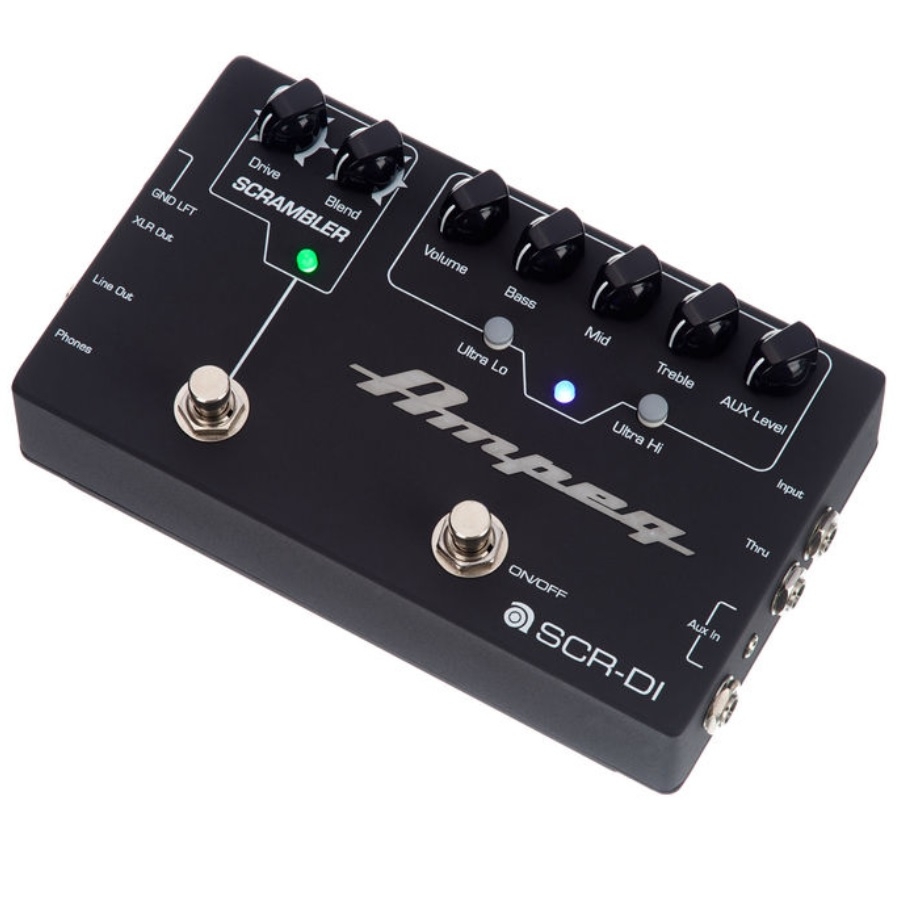 De SCR-DI is een krachtige preamp van Ampeg voor de basgitaar. Deze preamp is specifiek ontwikkeld om op het podium gebruikt te kunnen worden. Een preamp zorgt ervoor dat het geluid gecontroleerd verder loopt en het balanceert de signalen uit. Dit is echter wel in te stellen, zo kunt u bijvoorbeeld beslissen of u liever Ultra-Hi of Ultra-Lo tonen heeft. Het apparaat heeft vele toonmogelijkheden en een overdrive functie, waardoor het geluid gaat klinken of het uit een buizenversterker komt. Het apparaat heeft ook de mogelijkheid om een hoofdtelefoon of een apparaat via de AUX-output erop aan te sluiten. Met de AUX-mogelijkheid wordt het heel simpel om backing tracks af te spelen. Er zit ook een XLR-aansluiting op. Bovendien is de SCR-DI zeer compact, waardoor vervoer erg makkelijk is.