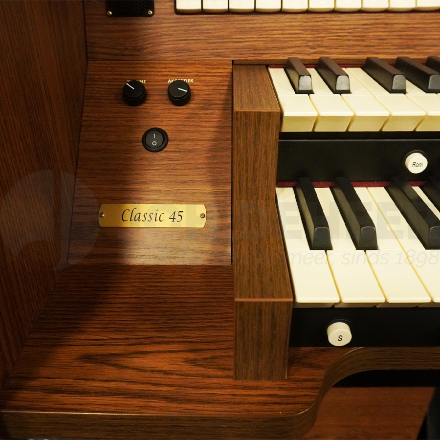 De Andante Classic 45 Donker Eiken is een pareltje onder de orgels. Het orgel heeft een moderne uitstraling en het bevat alle functies die u op een modern orgel mag verwachten. Het orgel bestaat uit 34 registers een 30 tonig pedaal en een twee zwelpedalen. Daarnaast bevat het orgel vier klankstijlen, zo komt een barok stuk nog beter tot zijn recht als u het bespeelt met de klankstijl barok. Door dit grote scala aan mogelijkheden kan u allerlei diverse stukken bladmuziek spelen, of u nou Sweelinck, Brahms, Reger of Herman van Vliet speelt het is allemaal mogelijk met dit orgel. Daarnaast bevat het orgel ook extra stemmen waardoor er bijv. ook een klavecimbel en een piano op het orgel zit. Genoeg mogelijkheden dus.