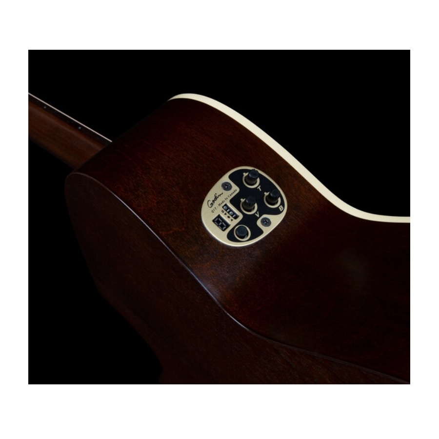 De Legacy CW is dus voornamelijk met Canadese houtsoorten gemaakt. Dit is wel duidelijk; het bovenblad is van cederhout gemaakt. Cederhout zorgt voor een warme klank met een nadruk op de hoge tonen. Het is dus ook een ideale houtsoort voor tokkelen. De achter- en zijkanten zijn van kersenhout gemaakt. Dit is een kenmerkende houtsoort voor Canadese gitaren. Het heeft een schitterende houtnerf en een geweldige sustain. De hals is van esdoornhout gemaakt en de toets van palissander. Palissander is de enige houtsoort op deze gitaar wat niet uit Canada komt, maar waarschijnlijk uit India. Palissander wordt echter gezien als één van de beste houtsoorten voor de toets, en zorgt voor een comfortabele speelervaring en een rigide samenstelling. Wat ook erg opvallend is aan deze gitaar, is dat ze Godin Q1T elektronica hebben gebruikt. Dit is een professionele preamp wat voor een mooi versterkt geluid zorgt, maar komt ook met een transducer, een EQ paneel, een ingebouwd stemapparaat en individuele volume-, treble- en basknoppen. Daarnaast heeft het systeem een klassiek uiterlijk wat de mooie vintage Bourbon Burst kleur fantastisch complementeert. Kortom, de Legacy CW is een professionele gitaar voor een degelijke prijs!