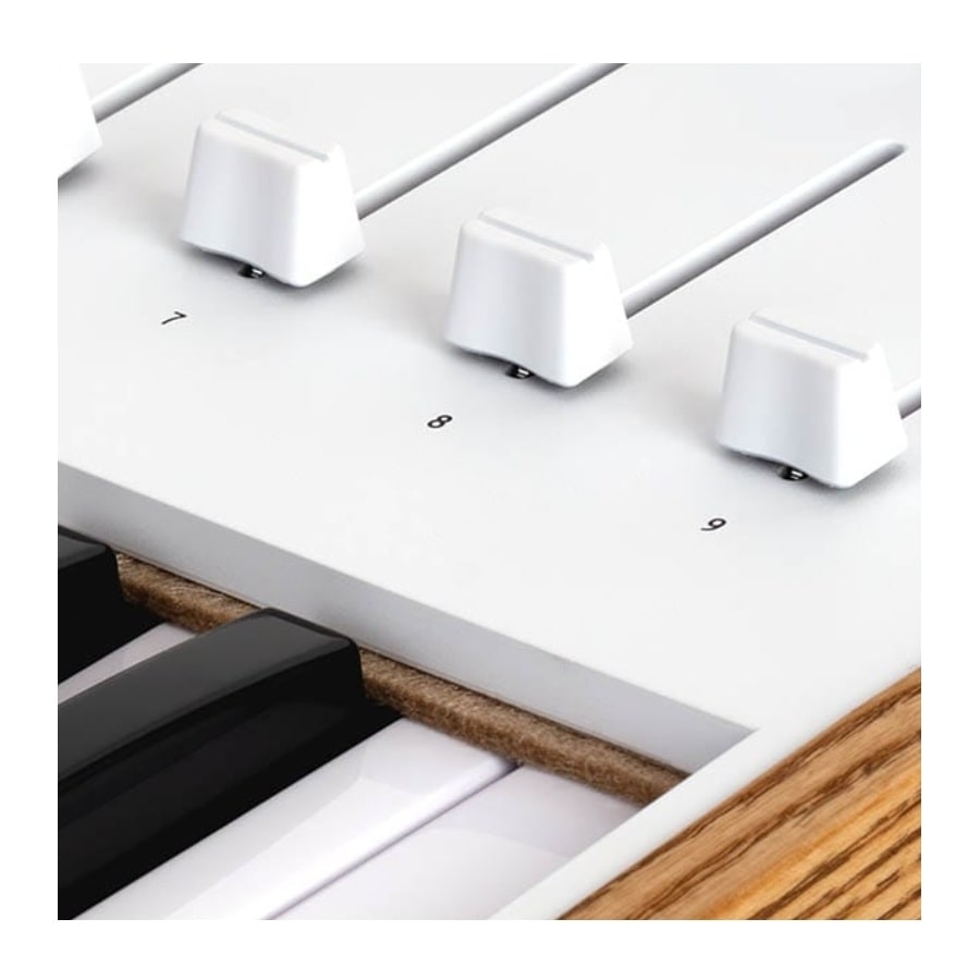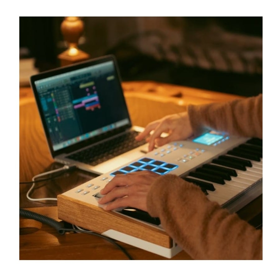 De Arturia KeyLab 61 MK3 is de opvolger van de KeyLab MKII en is een veelzijdig MIDI-keyboard met veel mogelijkheden en een stevige behuizing. De KeyLab 61 MK3 is gemaakt van een stevige lichtmetalen behuizing met houten accenten waardoor hij erg stevig is en luxe uitziet. De 61 semi-gewogen toetsen zijn kwalitatief erg goed en beloven jarenlang speelplezier.Verder heeft het keyboard 12 aanraakgevoelige pads, gevoelige potmeters, negen responsieve faders en twee handige modulatie wielen.