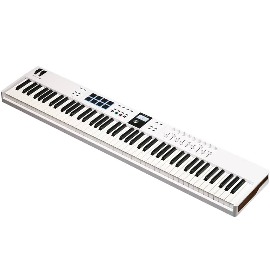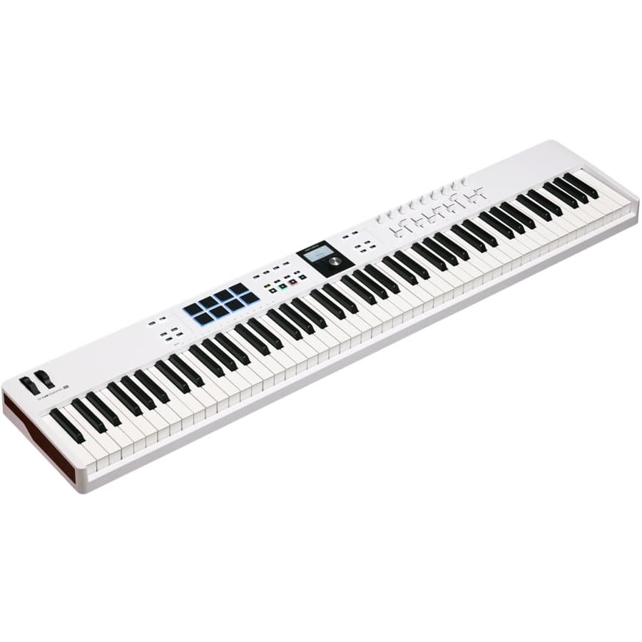 De Arturia KeyLab Essential 88 MK3 is de opvolger van de KeyLab Essential MKII en is een veelzijdig MIDI-keyboard met veel mogelijkheden en een stevige behuizing. De KeyLab Essential 88 MK3 is gemaakt van een stevige lichtmetalen eco-vriendelijke behuizing met houten accenten waardoor hij erg stevig is en luxe uitziet. De 88 toetsen zijn kwalitatief erg goed en beloven jarenlang speelplezier.Verder heeft het keyboard 8 aanraakgevoelige pads, gevoelige potmeters, negen responsieve faders en twee handige modulatie wielen.