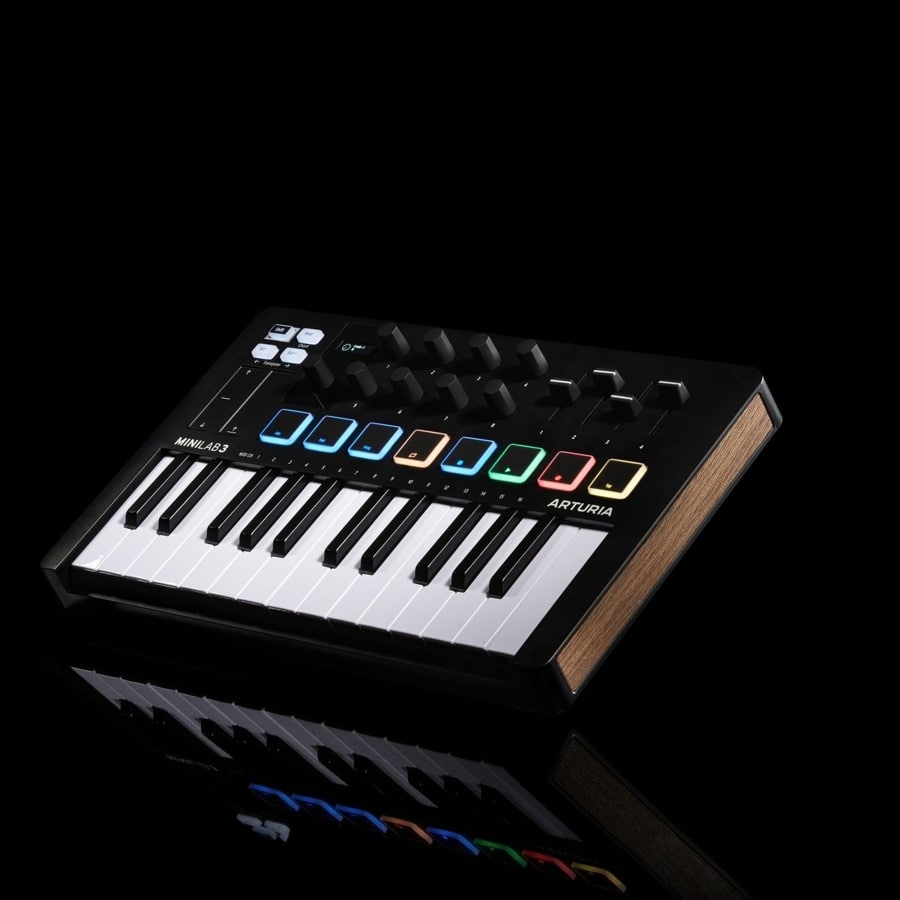 De MiniLab 3 is een enorm handig MIDI-keyboard van Arturia! Iedereen kan het systeem gebruiken, de knoppen zijn eenvoudig en de toetsen voelen authentiek aan. Bovendien is het een plug-and-play systeem met een volledig geïntegreerde software waardoor u direct aan de slag kunt! Het systeem komt met geweldige nieuwe geluiden die u zullen inspireren en die bij verschillende genres passen. De software is ook intuïtief, zelfs als u niets weet van toetsinstrumenten of software kunt u er geweldige muziek mee maken door u mee te laten slepen in de ritmes en instrumenten van de MiniLab 3. Zo kunt u bijvoorbeeld met één individuele toets gehele akkoorden opnemen of unieke synthesizer geluiden creëren. De MiniLab 3 staat al geïnstalleerd op de meeste opnamesoftware, waardoor u zich niet bezig hoeft te houden met installatie, integratie en synchronisatie, u kunt meteen aan de slag.