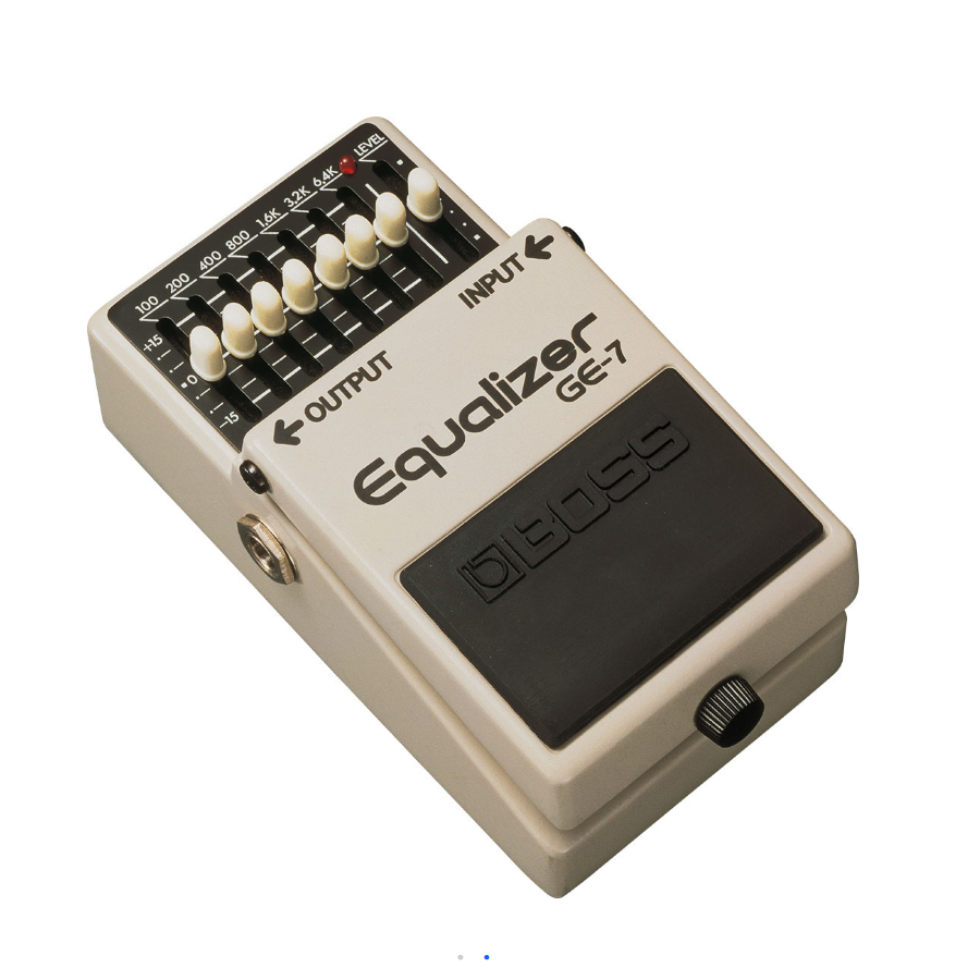 De Boss GE-7 is een degelijke en ruim instelbare equalizer met faders. Zeven banden van 100Hz tot en met 6.4kHz kunnen met 15dB worden verhoogd of verlaagd. Dit pedaal kan worden gebruikt door elektrische gitaristen om het geluid helemaal naar eigen vorm aan te passen of om ongewilde feedback te verhelpen. Door de level-functie is het ook mogelijk om de Boss GE-7 te gebruiken als boosters.