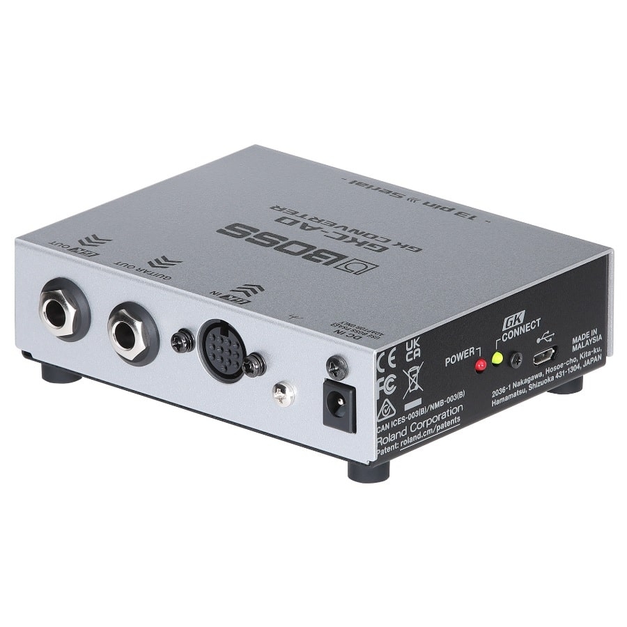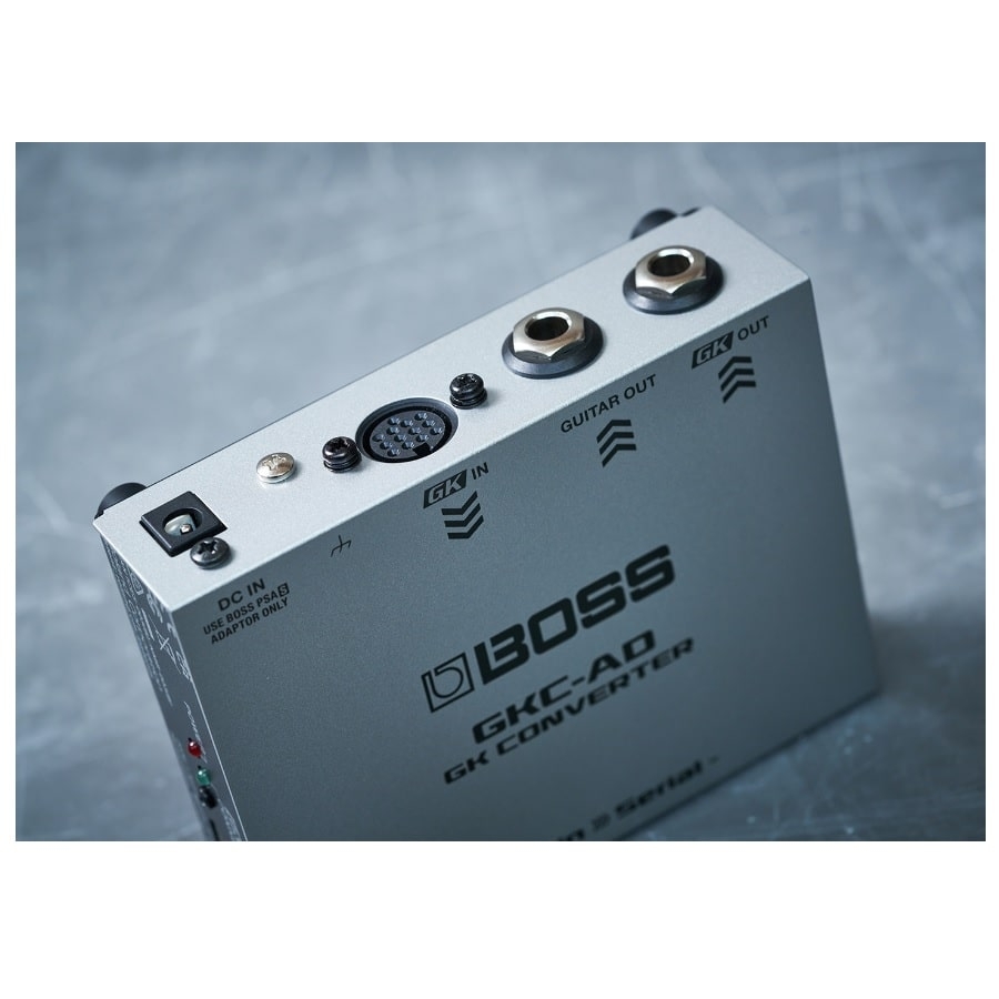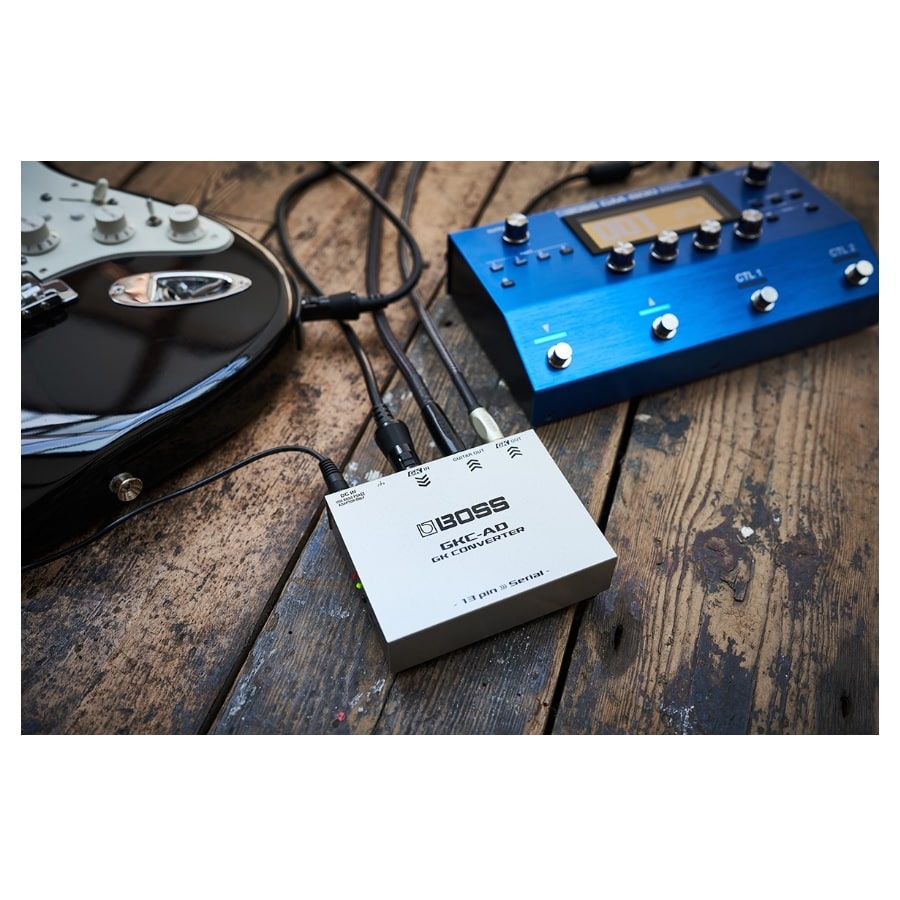 De GKC-AD is een handige convertor van Boss. Boss is een Japans bedrijf wat hoogwaardige audioproducten maakt. De nieuwste gitaarsynthesizerproducten van Boss zijn voorzien van de Serial GK digitale interface: een nieuw ontwikkelde verbindingsmethode die verbeterde prestaties levert ten opzichte van de analoge 13-pins GK-interface die werd gebruikt in eerdere gitaarsynthesizer- en modelingproducten van Boss en Roland. Met de GKC-AD GK-converter kunt u de seriële GK-ingang op de GM-800 gitaarsynthesizer aansturen vanaf een Roland GK-3 of GK-3B Divided Pickup of een instrument dat is uitgerust met een 13-pins GK-uitgang.