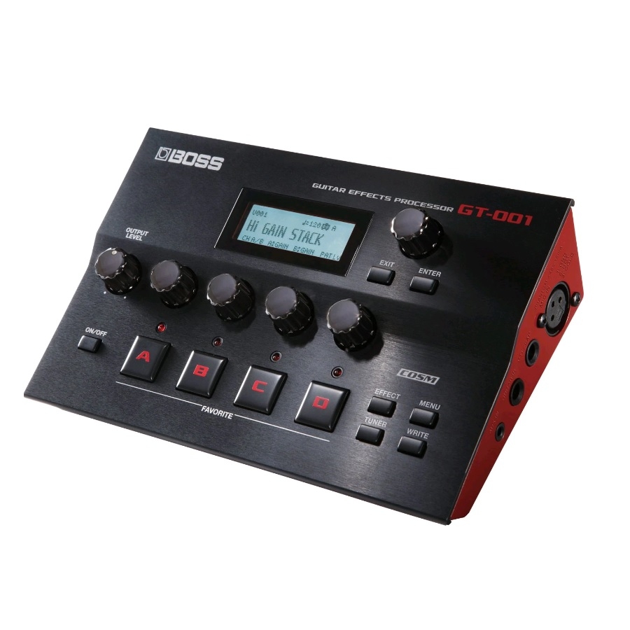 De GT-001 is een veelzijdige effectprocessor van Boss. Deze effectprocessor is bedoeld als desktop interface. Daarbij is het mogelijk om niet alleen een gitaar in te pluggen, maar ook een microfoon. Met de USB-poort is het mogelijk om de GT-001 op je PC of laptop aan te sluiten. Met dit systeem kan je in principe alle soorten geluiden creëren. Van uitstekende vervorming tot prachtig clean. De GT-001 bevat standaard effecten zoals reverb, delay, distortion, maar ook zeer unieke effecten. Het is mogelijk om zelf combinaties, oftewel patches, samen te stellen en op te slaan. Je kan ook het apparaat op een computer aansluiten en op deze manier de instellingen veranderen en patches samenstellen. Het is ook mogelijk om via Boss’ website nieuwe instellingen en patches te downloaden. Bovendien heeft de GT-001 een stemfunctie, zodat je geen los stemapparaat of tunerpedaal hoeft aan te schaffen.
