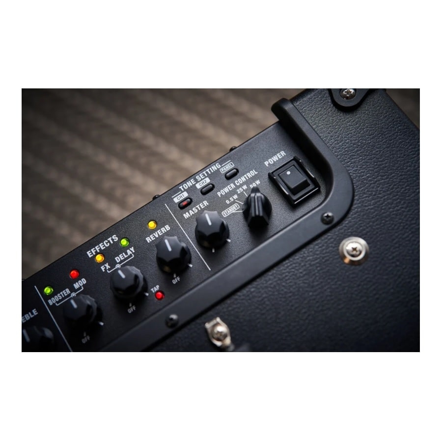 De Katana 50 MkII EX is een uitgebreidere versie van de Katana 50 MkII. De versterker is net zo compact en vervoerbaar als de 50 MkII maar is veelzijdiger en beter geschikt voor optredens. De versterker bevat een line-output waarmee deze rechtstreeks met een PA-systeem verbonden kan worden. Daarnaast kunt u ook een tweede Katana MkII versterker toevoegen via de Stereo Expand functie. Bovendien bevat de Katana 50 MkII EX meer effecten en functies. De versterker heeft vijf verschillende modelling versterkeropties (Clean, Crunch, Lead, Brown en Acoustic) en de effecten zijn aanpasbaar met de Boss Tone Studio. Er zijn ook vijf verschillende effectensecties: Booster, Mod, FX, Delay en Reverb. U kunt ook de versterker rechtstreeks op een computer aansluiten waardoor deze makkelijk is om op te nemen.