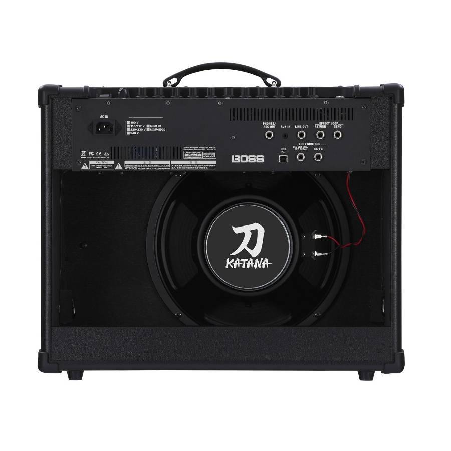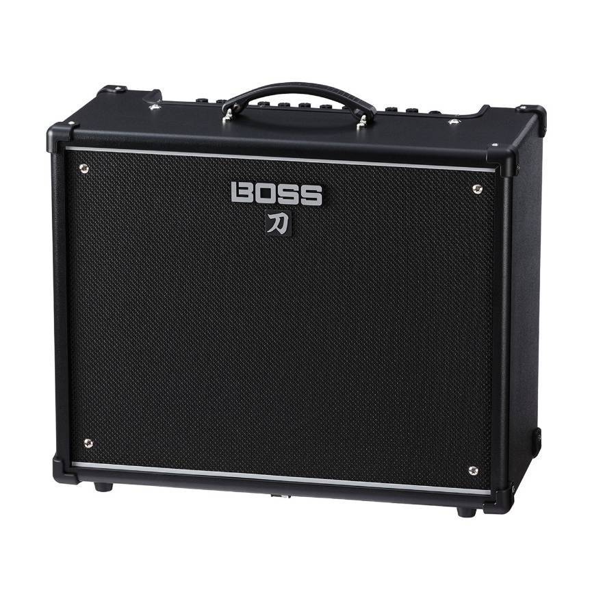 De Boss Katana 100 is een verfijnde gitaarversterker die aansluit bij gitaristen die zoeken naar hun eigen geluid. De 12 inch luidspreker wordt aangedreven middels een nieuwe innovatieve technologie, die ook gebruikt wordt in de Waza versterker, het topmodel van de serie. Dit leidt tot indrukwekkende snijdende sound. De versterker beschikt over vijf uiteenlopende karakters; Brown, Lead, Crunch, Clean en Acoustic. ‘Brown’ is een high-gain klank die het meest geliefd is onder rockgitaristen. De ‘lead’ wordt meer gebruikt onder bluesgitaristen en heeft een breed gain bereik waarmee vette solo’s tot vloeiende legato’s gespeeld kunnen worden. Voor een rauwe sound met een verfijnde respons moet u bij de ‘crunch’ zijn. Uiteraard kan ook een ‘clean’ karakter worden geselecteerd, wat leidt tot een natuurlijke en transparante klank. Het vijfde en laatste karakter is de ‘acoustic’ mode, die het mogelijk maakt om de versterker te gebruiken met een semi-akoestische gitaar. De authentieke akoestische eigenschappen zullen hierbij zeer realistisch worden weergegeven.
