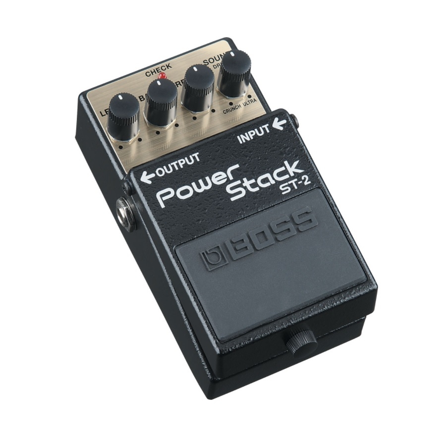 De ST-2 is een krachtige stompbox van Boss. Dit pedaal zorgt voor stevige crunch en goede gain. Dit pedaal bootst een ouderwetse buizenversterker na. Het pedaal heeft een levelknop, een bassknop, een trebleknop en een soundknop. Hiermee stelt u in hoeveel gain u wilt en welke klank u daarbij wilt hebben. Dit pedaal voegt dus geen onnatuurlijke vervorming toe. Dit is dus de ideale pedaal voor de gitarist die het gemak van een transistorversterker wilt hebben maar ook dat typische buizenversterker geluid.