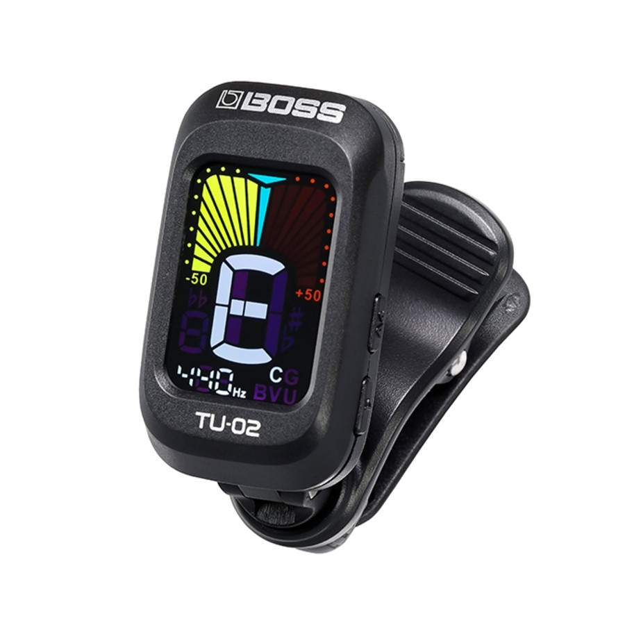 De Boss TU-02 is een handig en compact clip-on stemapparaat van Boss. De TU-02 heeft een grote batterijcapaciteit, en kan voor wel 24 uur onafgebroken aanstaan. Echter heeft het stemapparaat geen aan/uit knop en gaat dus vanzelf aan en uit zodra deze op het instrument wordt gezet of na lange tijd niet gebruikt wordt. Het display is erg helder en heeft een hoog contrast, zodat het goed duidelijk is. Hij is ook erg veelzijdig, dit model werkt perfect voor gitaar, basgitaar en ukelele.