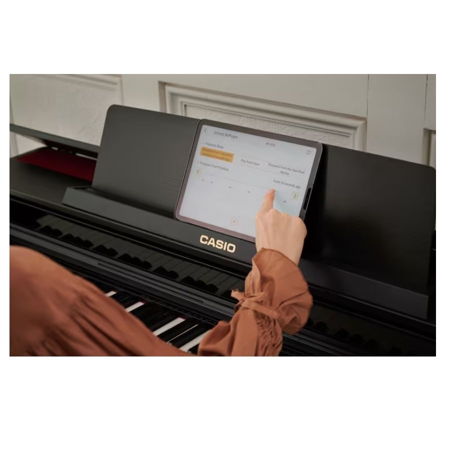 Maar als u zo graag een akoestische klank en ervaring wilt, waarom koopt u dan geen akoestische piano? Hier zijn veel verschillende redenen voor die duidelijk kunnen worden uitgelegd met de AP-550. Ten eerste zijn akoestische piano’s significant duurder, beide bij aankoop en onderhoud. Een digitale piano hoeft ook niet gestemd te worden en heeft minder last van vocht. Een belangrijke reden dat veel mensen een digitale piano kopen, is dat deze met een hoofdtelefoon gebruikt kan worden. Akoestische piano’s gebruiken hamers die op snaren slaan waardoor het geluid erg hard is. Dit wordt vaak minder geapprecieerd door buren en huisgenoten en wordt een volumeregeling of hoofdtelefoon juist wel gewaardeerd. Ook heeft het systeem een Volume Sync Equalizer, wat ervoor zorgt dat zelfs op een heel laag volume de klanken nog mooi gebalanceerd zijn. Zodoende kunt u spelen wanneer u zin hebt. Verder heeft de AP-550 een opnamefunctie en een USB-geheugen. Ook kan het geluid lichtjes aangepast worden met verschillende ingebouwde effecten en bevat het systeem een ingebouwde metronoom. Bovendien kunt u zelfs uw telefoon op de piano aansluiten via de meegeleverde MIDI-adapter en kunt u het systeem nog verder uitbreiden via de Casio Music Space app.