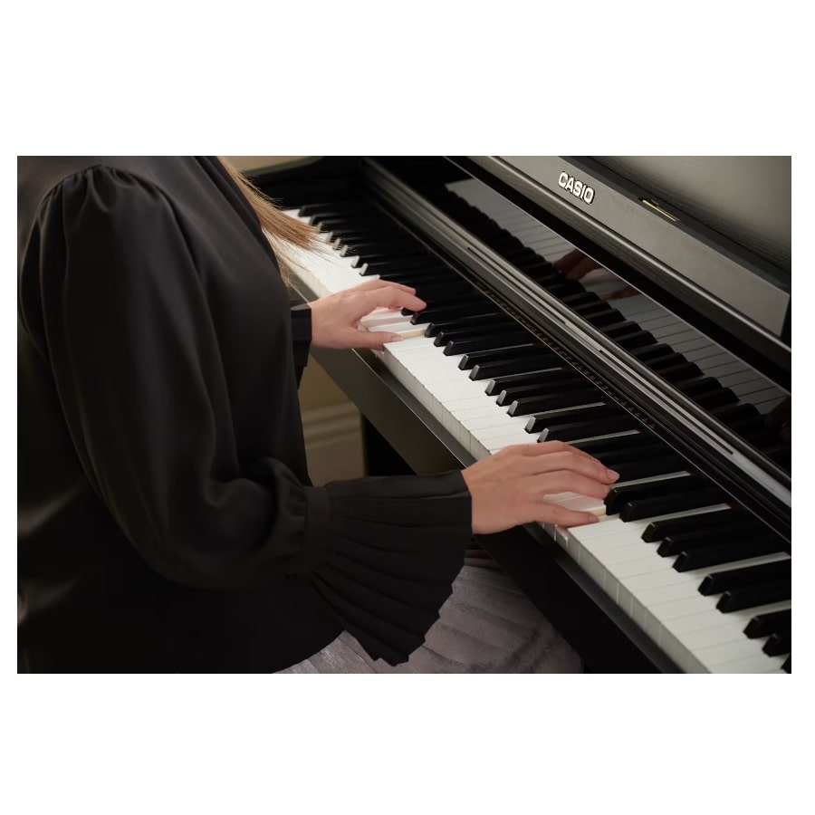 De Celviano serie van Casio is speciaal ontwikkeld om digitale piano’s op de markt te brengen die zo dicht mogelijk bij het geluid en ervaring van een akoestische piano zitten. Ze hebben dus voornamelijk gelet op de essentie van de piano: het geluid en de aanslag. Hiervoor hebben ze een fijne combinatie gebruikt aan akoestische fysieke mechanismen en digitale technologie. Bovendien hebben ze unieke geluidsbrontechnologie van Casio gebruikt om de akoestische klanken zo authentiek mogelijk na te bootsen. De fysieke mechanismen zorgen er dan ook weer voor dat het voor u voelt alsof u achter een akoestische piano zit.