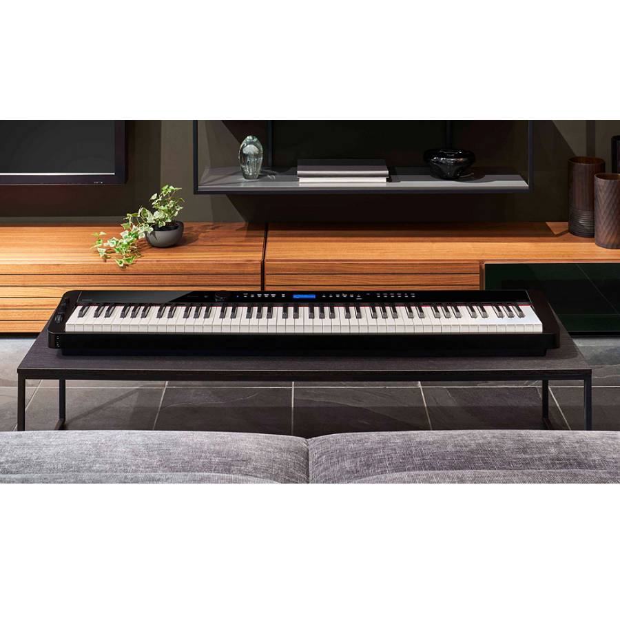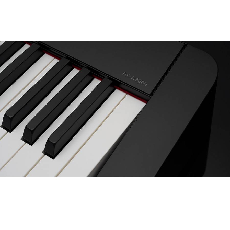 De Casio PX-S3000 is een innovatieve portable digitale piano uit de nieuwe Privia-serie. Compact, stijlvol en slim zijn de drie kernwoorden die Casio als uitgangspunt gebruikt voor hun nieuwe modellen. Deze grotere broer van de PX-S1000 beschikt over vele functionaliteiten zoals een groot scala aan klanken, vele ritmes en een realistisch aanvoelend gewogen klavier. Het design is zeer fraai te noemen. Geen fysieke knoppen meer maar een touch sensor besturing waardoor de piano een strak modern design heeft.