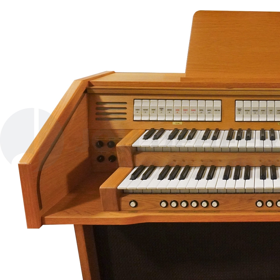 De kast van de D2330 is uitgevoerd in massief eiken in een blanke kleurstelling. De aansluitingen voor speakers, een hoofdtelefoon en Midi maken dit orgel nog steeds breed inzetbaar in de moderne muziekwereld. Dit orgel levert u gegarandeerd nog jaren speelplezier!