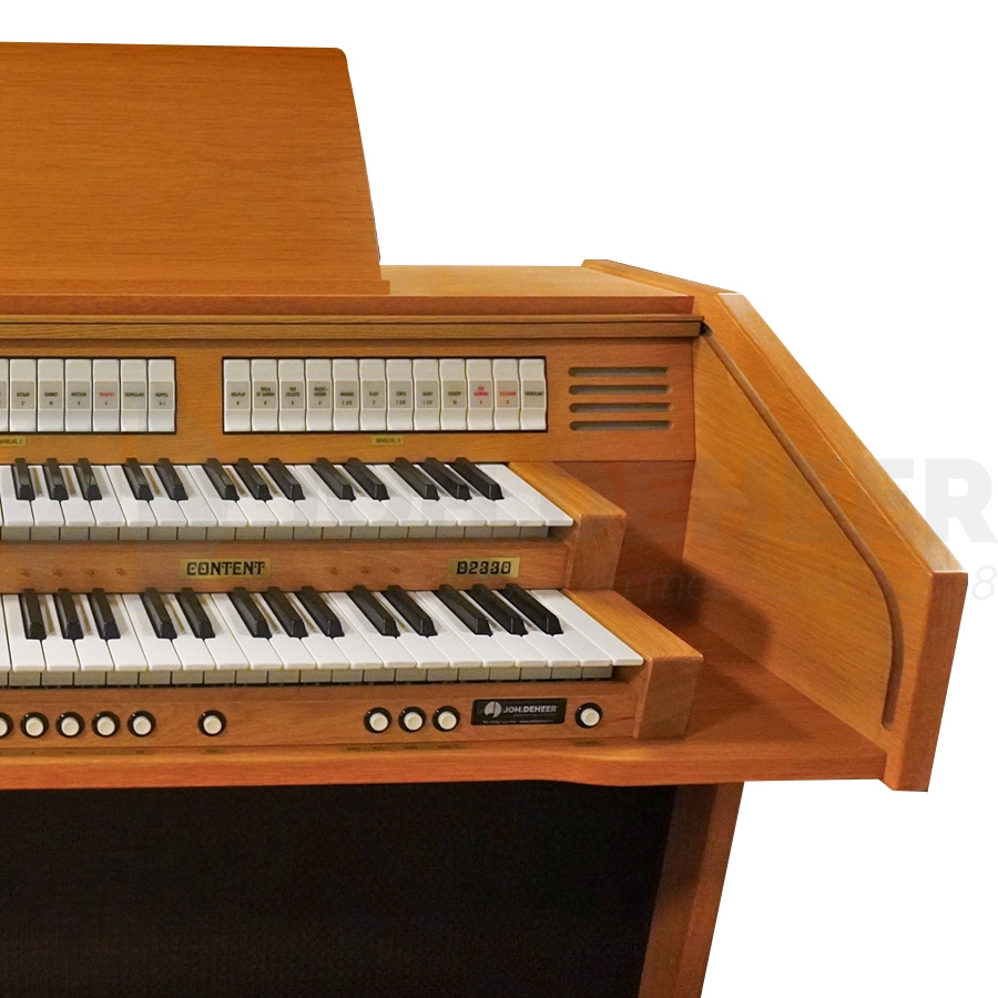 Het Content D2330 klassieke orgel is een erg mooi model uit de toenmalige D2300-reeks. Dit blank eiken model is uitgerust met twee manualen en een 30-tonig pedaal, wat het tot een volwaardig orgel maakt. De warme klank die uit de mooie speakers en versterkers wordt gegenereerd, pleziert iedere liefhebber van klassieke orgelwerken en kerkmuziek. Ideaal voor het spelen van psalmen en gezangen en befaamde klassieke werken van o.a. Bach of Buxtehude.