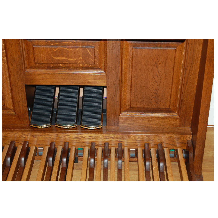 Het Content Pastorale orgel is niet zomaar een orgel. De vorige eigenaar heeft het orgel geheel gepersonaliseerd naar eigen wens, waardoor dit exemplaar zeer uniek is. Het orgel heeft drie chique zwelpedalen. Deze pedalen hebben een zwart rubberen bekledingen en een goudgekleurde metalen behuizing.