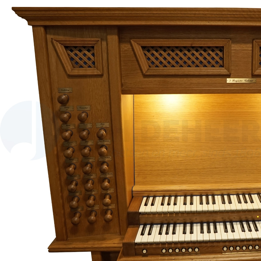 Het Content Register Cabinet is een zeer compleet cabinet orgel voor een interessante prijs. De massieve kast is uitgevoerd met houten trekregisters en is een sieraad voor uw woonkamer. Het orgel beschikt over een warme mooie ronde klank en heeft een uitgebreide dispositie.