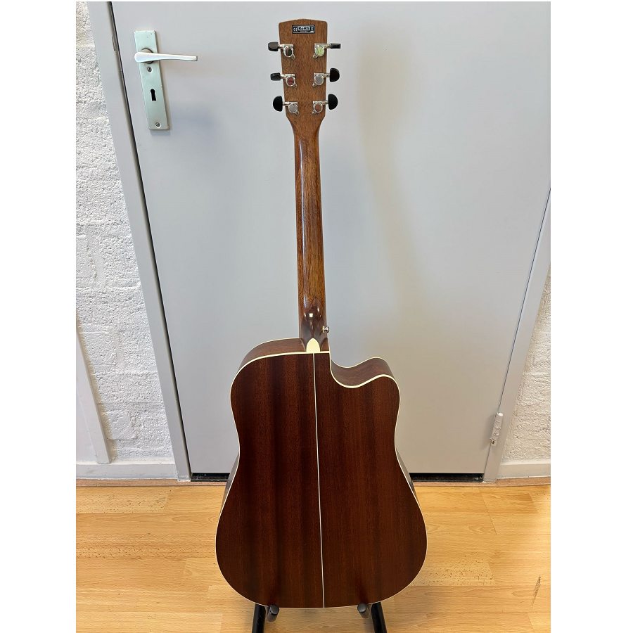De Cort MR710F Linkshandig is een veelzijdige elektro-akoestische gitaar, ontworpen voor linkshandige gitaristen die op zoek zijn naar een instrument met een rijke klank en uitstekende speelbaarheid. Met zijn klassieke dreadnought-body en Venetiaanse cutaway biedt deze gitaar gemakkelijke toegang tot de hogere frets, wat ideaal is voor zowel beginners als gevorderde spelers.?
