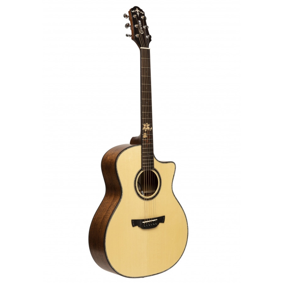 De Crafter G-MAHO CE is een professionele Grand Auditorium gitaar met een warme klank. Dit speciale Wild Flower model heeft daarnaast een opvallende versiering. Wie op zoek is naar een prachtige, veelzijdige gitaar met ingebouwde elektronica moet zeker deze Crafter uitproberen!