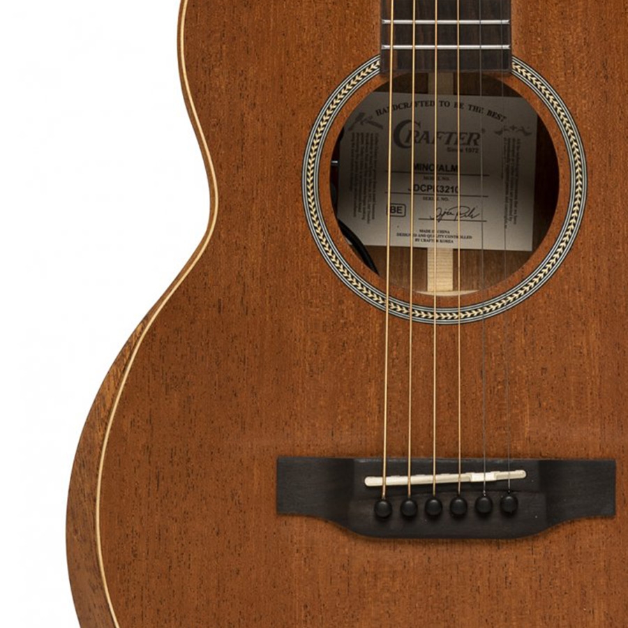 De Crafter MINO-ALM is gemaakt van hoge kwaliteit materialen. Zo heeft hij een massieve mahoniehouten bovenblad, en mahoniehouten zij- er achterkant. De massieve mahonie top creëert een detailvolle klank die u niet snel verwacht uit een reisgitaar, en de mahoniehouten zij- en achterkant zorgen voor een neutrale weergave. Dankzij zijn matte afwerking op de body en mahoniehouten nek speelt deze gitaar erg comfortabel. Daarnaast hoeft u zich ook geen zorgen te maken om krassen of beschadigingen. De toets is gemaakt van palissander. Voor wie met versterking wilt spelen heeft de MINO-ALM ook nog een DS-2 Preamp ingebouwd! En als kers op de taart komt hij ook inclusief een stevige gigbag. Kortom: De Crafter MINO-ALM is een uitstekende travel gitaar met een prachtige klank en veel extra’s!