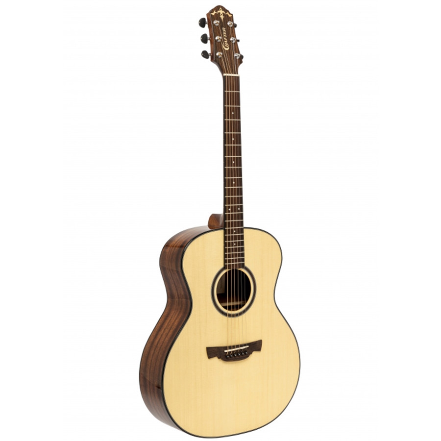 De Crafter T600 N is een orchestra model. Dit betekent dat de klankkast relatief klein is, wat resulteert in een geconcentreerde klank met een neutrale EQ. Dit is ideaal als u op zoek bent naar een veelzijdige gitaar voor fingerstyle muziek. Crafter gebruikt ondanks het prijskaartje, erg hoge kwaliteit materialen bij de T600. Zo heeft hij een massieve Engelmann sparrenhouten top, en een mahoniehouten zij- en achterkant. Deze klassieke houtcombinatie resulteert in een heldere, detailvolle toon die hard volume haalt. De hoogglans afwerking op de body maakt de gitaar ook erg mooi om te zien. Voor de gitaristen die zoeken naar een comfortabele speelervaring, is de Crafter T600 ook een uitstekende keuze. De matte mahoniehouten nek met binding speelt erg soepel, en als kers op de taart heeft hij ook nog eens een echte palissander fretboard. Kortom: De Crafter T600 N is een prima instrument voor de gitarist die op zoek is naar een upgrade.
