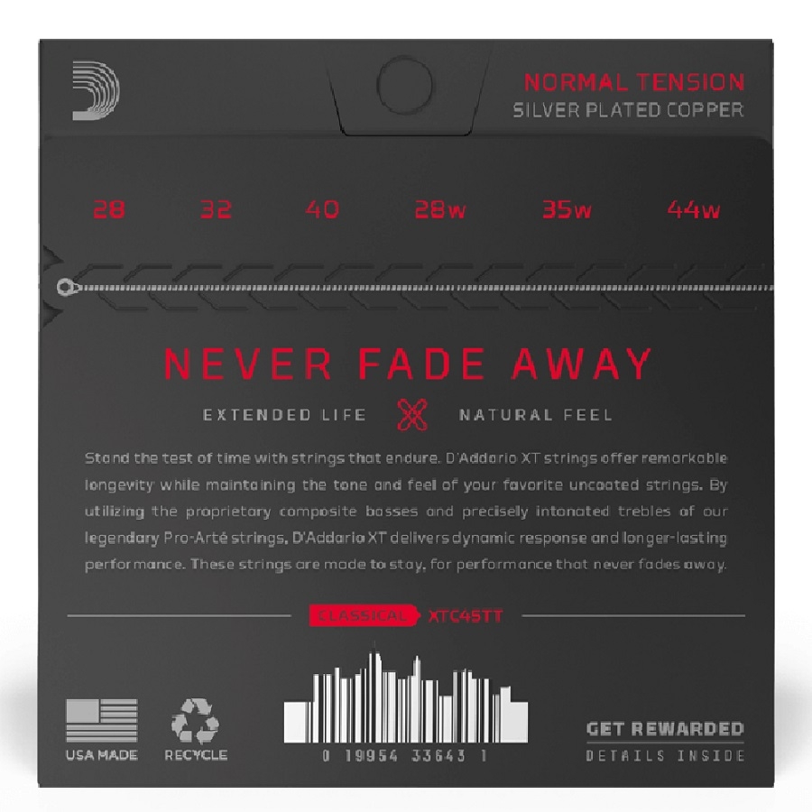 De D’Addario XTC45TT Titanium Coated snaren zijn gebouwd om te weerstaan, dankzij D'Addario's geavanceerde XT-coatingtechnologie. Dit verlengt de levensduur van de snaren aanzienlijk, waardoor je langer kunt genieten van hun rijke klank en responsiviteit. Of je nu vaak speelt of af en toe, deze snaren behouden hun speelbaarheid en klank, wat resulteert in een consistent geluid over de tijd.
