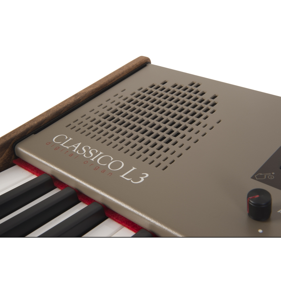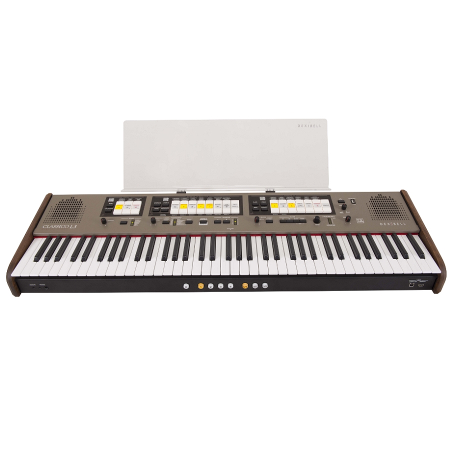De Dexibell Classico L3 is een uitzonderlijke portable klassiek kerkorgel. Dit nieuwe in Italië ontworpen en geproduceerde orgel combineert authentieke warme orgelklanken die worden opgeroepen middels een innovatieve klanktechnologie met een stijlvol uiterlijk. Het Italiaanse klassieke vakmanschap is dan ook terug te zien in de prachtige klassieke afwerking van dit orgel. Het slechts 14 kilo wegende instrument beschikt over een klavier bestaande uit 76 toetsen.