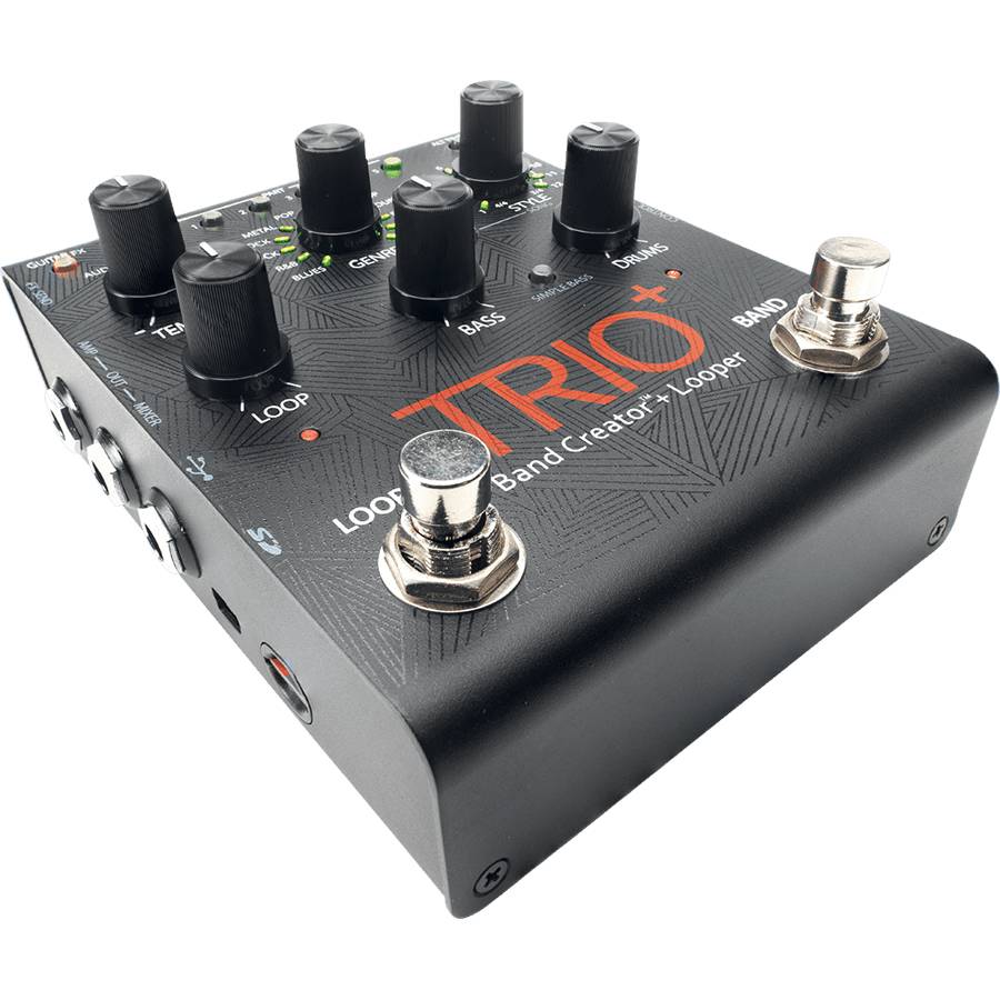 Met de Digitech Trio Plus Band Creator kan u met behulp van een loop uw eigen band samenstellen. Druk op de Band Footswitch en begin met het spelen van je akkoordprogressie. Zodra u klaar bent en nog een keer op de knop drukt zal dit magische effectpedaal de band samenstellen en de gespeelde akkoordprogressie zelf spelen. Dit is geweldig voor solo en straatmuzikanten die hun spel willen opleuken met een virtuele achtergrondband.