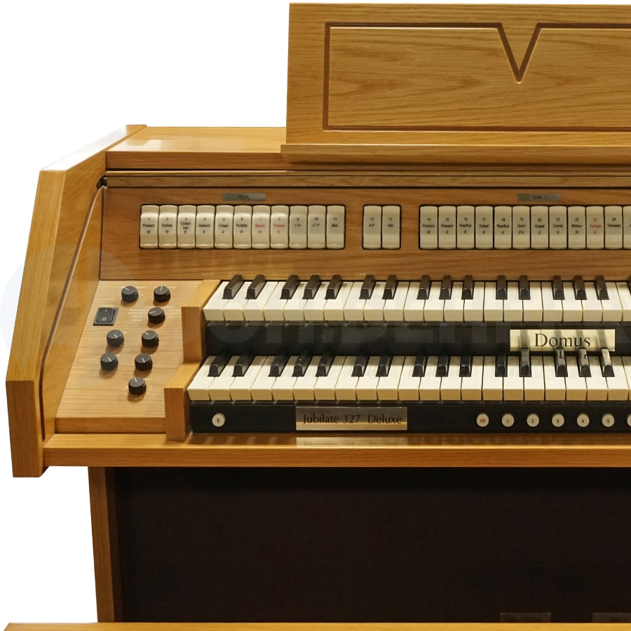 De Domus Jubilate 327 Deluxe is een fraai tweeklaviers orgel, uitgevoerd in een blank eiken kleurstelling. Het in Italië gebouwde orgel is in uitstekende staat en wordt compleet geleverd met een 27-tonig pedaal en een orgelbank. Het compacte orgel heeft een warme orgelklank en een uitgebreide dispositie, met wel 28 sprekende stemmen tot uw beschikking! Een mooi, degelijk en passend orgel voor in de huiskamer of in de kerk, voor in de studeerkamer of in die zaal... Hebt u belangstelling, neem gerust contact op!