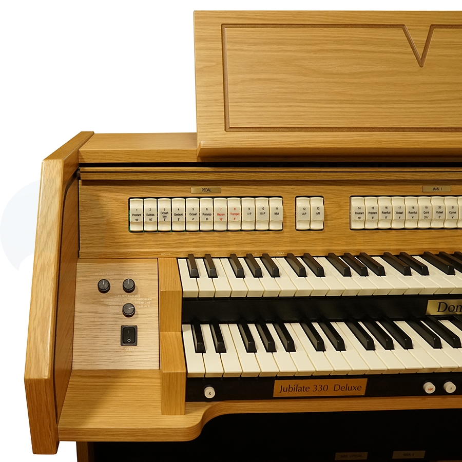 De Domus Jubilate 330 Deluxe is een fraai tweeklaviers orgel, uitgevoerd in een blank eiken kleurstelling. Het in Italië gebouwde orgel is in uitstekende staat en wordt compleet geleverd met een 30-tonig pedaal en een orgelbank. Het compacte orgel heeft een warme orgelklank en een uitgebreide dispositie, met wel 28 sprekende stemmen tot uw beschikking! Een mooi, degelijk en passend orgel voor in de huiskamer of in de kerk, voor in de studeerkamer of in die zaal... Hebt u belangstelling, neem gerust contact op!