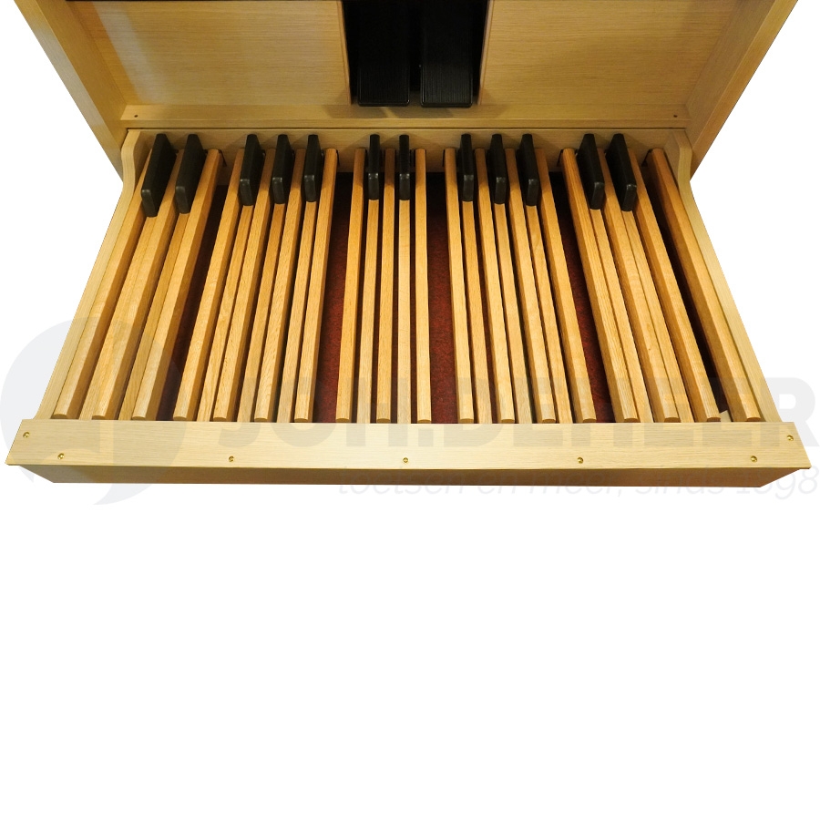 Viscount orgels staan altijd zeer goed bekend en dit komt mede door de unieke klavieren die zij gebruiken. Dit nieuwe model is ook weer uitgevoerd met twee “Tracker Action” klavieren, die ook nog eens aanzienlijk verbeterd zijn. Hierdoor bieden deze klavieren nog meer het “ware gevoel” waar elke organist naar zoekt en dit draagt gegarandeerd bij aan de ultieme orgelervaring! Bij orkeststemmen of midi gebruik zijn de klavieren ook nog aanslaggevoelig!
