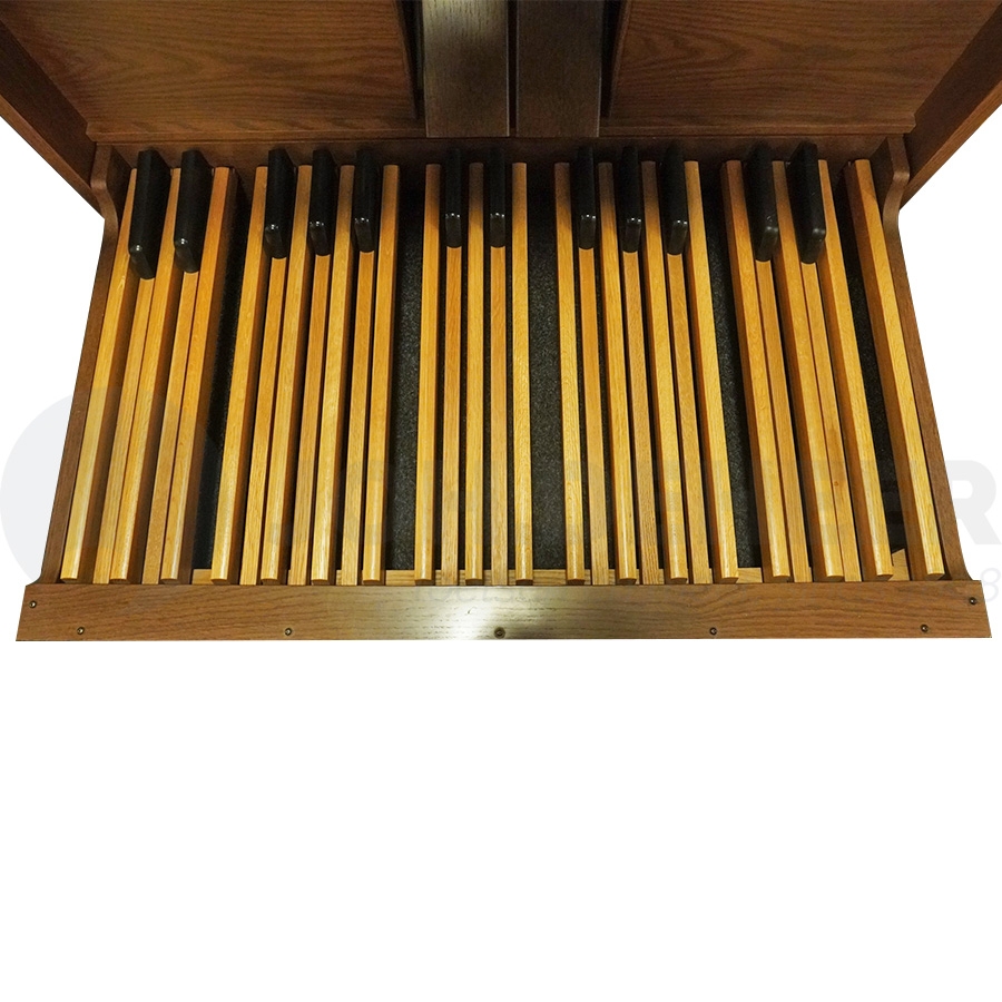 - Pedaalomvang: C-f’ [30-tonig recht of concaaf pedaal ]