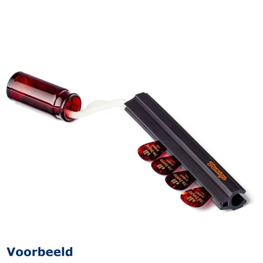 Deze plectrum- en slidehouder is de ideale toevoeging voor uw microfoonstandaard! U kunt uw plectra kwijt in het lange zwart gedeelte waardoor u er makkelijk bij kan. Het achterste deel hiervan kan rechtstreeks op uw microfoonstandaard geklikt worden. Aan de bovenkant zit nog een extra kleine arm om een gitaar slide aan op te hangen.