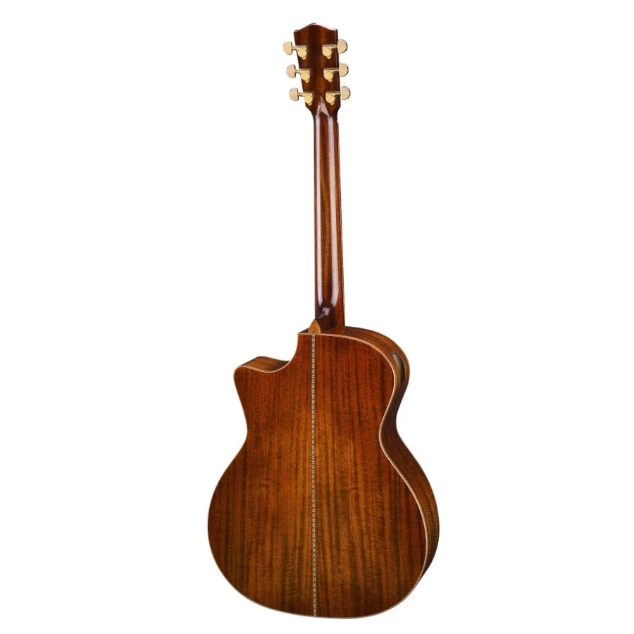 De achter- en zijkanten zijn van massief mahoniehout gemaakt, wat voor een warm en krachtig geluid zorgt. De hals is van mahoniehout gemaakt en de toets van ebbenhout. Dit zijn hoogwaardige houtsoorten en zorgen voor een comfortabele speelervaring. Deze verschillende houtsoorten zorgen niet alleen voor het mooie uiterlijk; Eastman heeft prachtige binding, een gedetailleerde rozet en een schitterend toetspatroon aan de gitaar toegevoegd, waardoor deze er zeer luxueus en uniek uitziet. De gitaar wordt met een koffer geleverd. Kortom, de AC522CE is een unieke en zeer professionele gitaar!