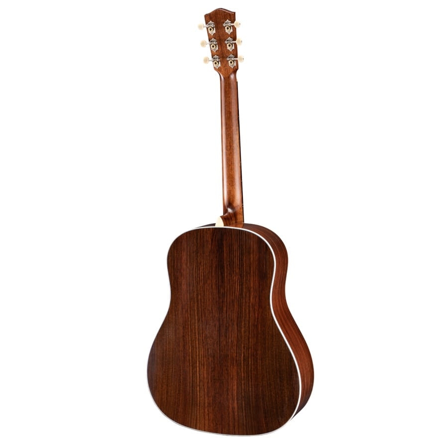 De hand-gekerfde scalloped X-bracing laat de gitaar vrij ademen en versterkt projectie en nuance. De mahoniehouten hals heeft een comfortabel Traditional Even “C” profiel, gecombineerd met een 12" palissander toets en Jescar-fretwerk voor een vloeiende en nauwkeurige speelervaring. Dankzij de 24.75" mensuur is de snaarspanning net iets lager, wat bijdraagt aan het soepele speelcomfort.