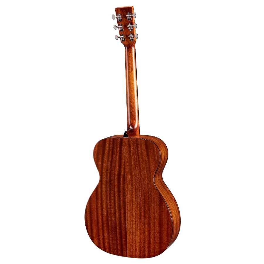 De E2OM-BK is een orchestra gitaar, dit is een zeer veelzijdige gitaarvorm. De klankkast is een slag kleiner dan de populaire dreadnought. Hoewel de orchestra voornamelijk geweldig klinkt met tokkelen is deze ook zeker geschikt voor slaggitaar. De top is gemaakt van massief cederhout. Wat houdt dit in? Massieve tops zijn in vergelijking met gelamineerd een stuk beter in klank. Niet alleen de kracht van het geluid neemt toe, maar ook de warmte en volheid. Cederhout is een populaire houtsoort voor klassieke gitaren want het heeft een mooi warm geluid. Ook voor westerngitaren zorgt dit voor een fijn geluid. De achter- en zijkanten zijn van massief sapele gemaakt, wat voor een helder en resonant geluid zorgt.