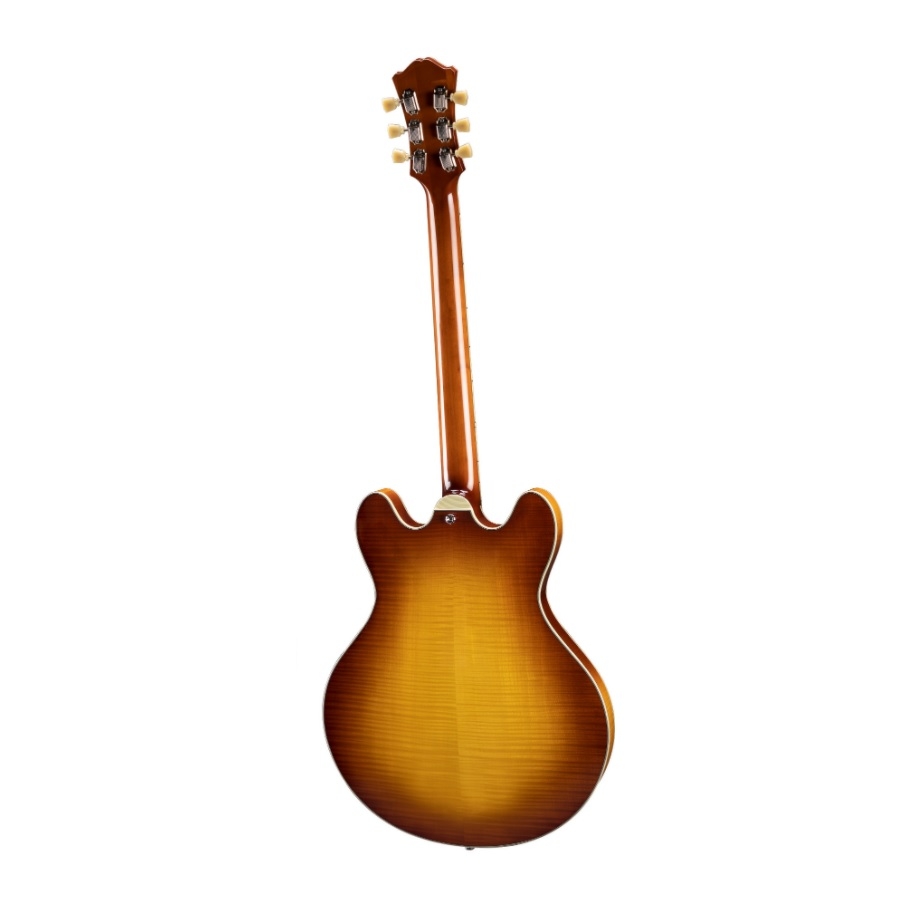 De T486B is een hoogwaardige en zeer veelzijdige thinline hollow-body gitaar. De body is van esdoornhout gemaakt, wat geweldig resoneert. Het esdoornhout is van de hoogste kwaliteit en komt uit milieuvriendelijke bossen. Deze resonantie wordt opgevangen door twee Seymour Duncan Phat Cat elementen. Dit zijn single-coil P90 elementen die gevormd zijn als humbuckers. Als gevolg heeft deze gitaar zowel de voordelen van humbuckers en single-coil elementen. De gitaar klinkt dus prachtig met een clean geluid, vanwege het single-coil mechanisme, maar de gitaar klinkt ook zeer krachtig met vervorming. Dit helpt met de veelzijdigheid van de gitaar, de gitaar kan voor vele genres gebruikt worden. Bovendien heeft de T486B een Bigsby tremolo systeem. Deze systemen worden in Amerika gemaakt en zijn van hoge kwaliteit. De goldburst kleur geeft de gitaar een speelse en professionele uitstraling, terwijl de f-gaten, slagplaat en het tremolo systeem de gitaar een vintage uiterlijk geven. Kortom, een veelzijdige thinline gitaar die met het beste materiaal ontwikkeld is!