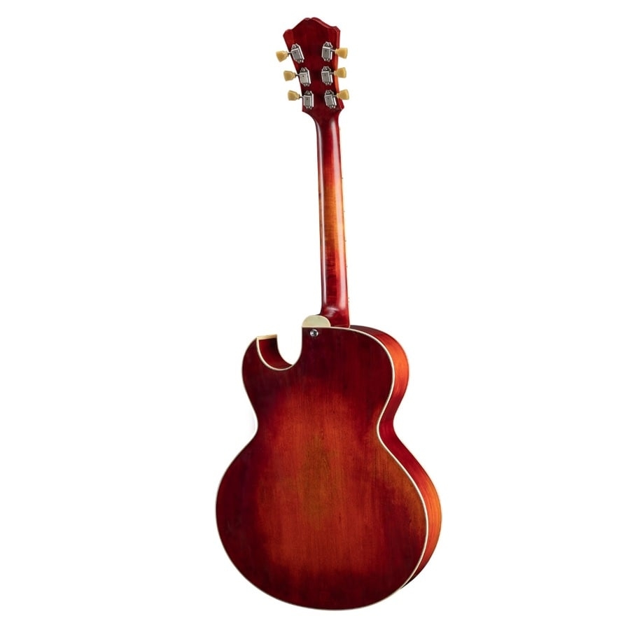 De T49D/v is een prachtige en professionele archtop gitaar van Eastman. Een archtop gitaar is precies wat de naam insinueert; archtop betekent in het Engels namelijk een gebogen top. De klankkast loopt dus niet recht maar kromt dus een beetje. Daarnaast hebben archtop gitaren ook altijd twee F-gaten aan beide kanten van de brug. Deze constructie is geïnspireerd door violen, omdat het bleek dat de F-gaten meer ruimte creëren voor resonantie en projectie. Een gekromde bovenkant is hierbij dan ook heel belangrijk, omdat de geluidsgolven niet goed kunnen bewegen als de gaten geen afgeronde randjes hadden. Dit betekent echter dus ook dat archtop gitaren hol zijn. Dit betekent dat een archtop gitaar een stuk ruimer, resonanter, en voller klinkt dan een solid body gitaar.