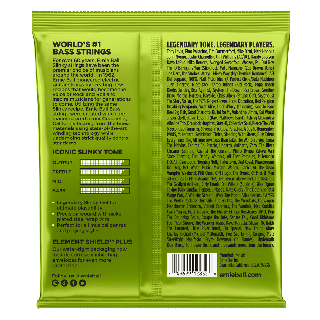 De Ernie Ball 2832 Regular Slinky bassnaren creeën een heldere en gebalanceerde toon. Ernie Ball maakt al sinds 1962 snaren die door miljoenen gitaristen en bassisten worden gebruikt. Bekende artiesten zoals Paul McCartney, Tony Levin, Mark Hoppus en Mike Herrera gebruiken Ernie Ball op hun basgitaren vanwege de geweldige klank en lange levernsduur. Kortom: Dit is een snarensetje die iedere bassist wel eens geprobeerd moet hebben.