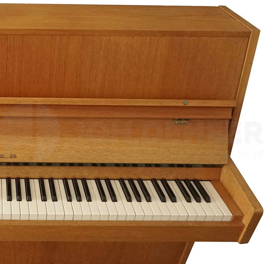 De Fazer 1.08 is een kwalitatief goede piano van Finse afkomst in een wat betaalbaardere klasse. Het degelijke Scandinavische instrument draagt zorg voor een warme klank en is een studiepiano die zal garant zal staan voor vele uren speelplezier. De donker bruine kast verkeert nog in nette staat en technisch is de piano volledig nagelopen.