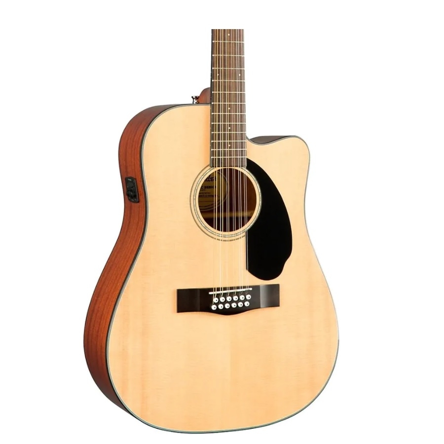 De CD60SCE is de geweldige nieuwe 12-snarige gitaar van Fender. Fender is een legendarisch merk dat door onder andere David Gilmour en Keith Richards wordt gespeeld. Dit model heeft een cut-out, waardoor de gitaar zeer veelzijdig is. Ook kan deze gitaar versterkt worden, hij heeft een ingebouwde input en elektronica, waaronder een pre-amp en een stemapparaat. De gitaar is 12-snarig, wat betekend dat elke snaar dubbel is, en bij de laagste vier snaren zijn de dubbele snaren in een ander octaaf gestemd. Hierdoor wordt de klank veel voller. 12-snarige gitaren komen met andere technieken, maar zonder ervaring speelt is deze gitaar ook redelijk te spelen. Het bovenblad is gemaakt van sparrenhout, en de achter- en zijkanten zijn gemaakt van mahoniehout. Dit zorgt voor een helder en warm geluid. Kortom, een unieke gitaar voor een geweldige prijs!