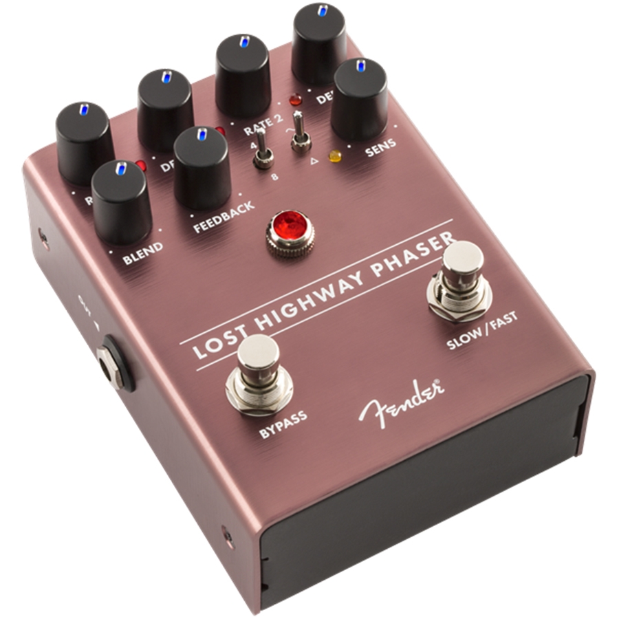 De Fender Lost Highway is een analoog phaser pedaal geheel ontwikkeld door Fender. Fender is een van de populairste gitaarmerken ter wereld, en met hun nieuwe lijn effectpedalen laten ze zien dat ze ook heer en meester zijn op het gebied van effecten. Dit pedaal heeft een lichte aluminium behuizing en is relatief compact waardoor hij makkelijk op veel pedalboards past. Speelt u vaak in een donkere ruimte? Dan zal de ingebouwde backlight erg goed van pas komen!