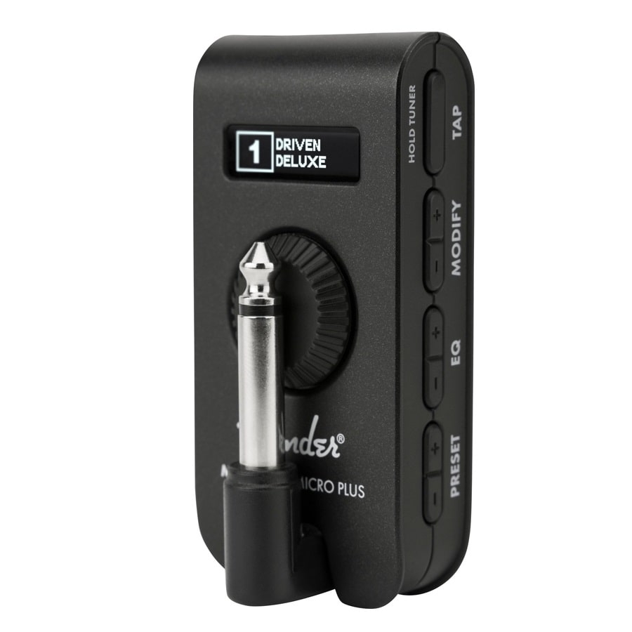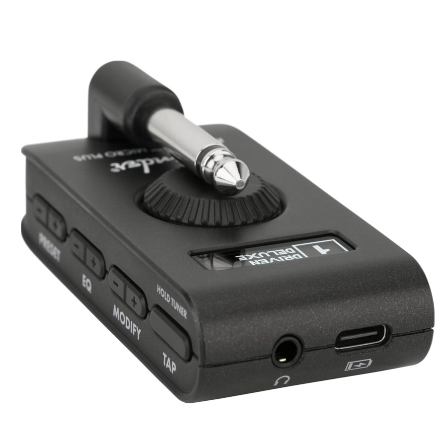 Fender heeft een nóg betere versie gemaakt van hun populaire Mustang Micro: de Mustang Micro Plus. De Mustang Micro apparaatjes zijn mini-gitaarversterkers waarmee u met een hoofdtelefoon kan spelen. Sluit het apparaatje op de output van uw gitaar aan en plug uw hoofdtelefoon of oortjes in de hoofdtelefoonaansluiting en u kunt spelen. Dit is ideaal voor de gitarist die met anderen samenwoont of in een flatgebouw woont, want het versterkte geluid is alleen door u te horen. Bovendien kunt u er bij de Mustang Micro Plus van uitgaan dat u hoge kwaliteit geluiden kan verwachten: het apparaatje bevat 25 modelling versterkers en 25 effecten, waardoor u dus altijd het perfecte geluid kan produceren. Als u de Fender Tone App download heeft u ook toegang tot 100 preset slots die u zelf kunt creëren. Daarnaast heeft de Mustang Micro Plus een handig schermpje en een ingebouwd stemapparaat. Het apparaatje heeft ook een Bluetooth functie waardoor u uw smartphone of PC er op kan aansluiten en tegelijkertijd met uw favoriete muziek mee kan spelen. U kunt de Mustang Micro Plus via USB-C opladen en hiermee ook opnemen. De batterij gaat tot vier uur mee.