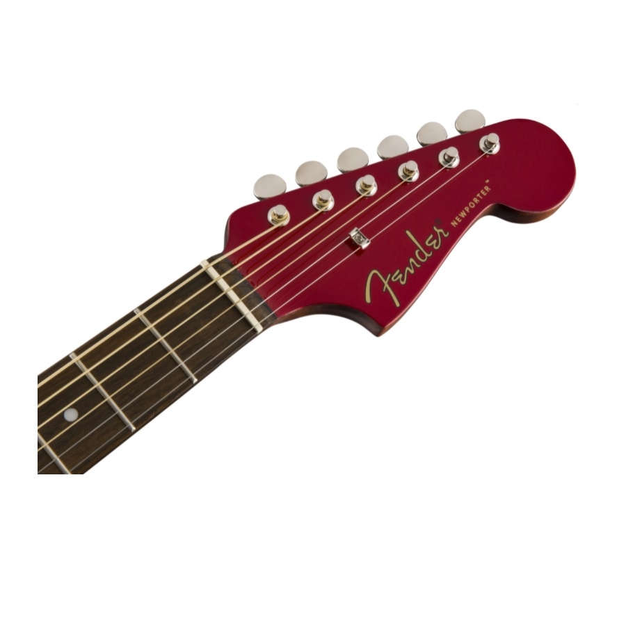 De Newporter Player is een goede akoestische gitaar van Fender. Fender is één van de populairste merken op het gebied van gitaren, echter staan ze voornamelijk bekend om hun elektrische gitaren en basgitaren. Hun akoestische gitaren worden wel steeds populairder. Dit komt omdat ze hun assortiment steeds verder uitbreiden, waardoor er veel verschillende keuzes zijn. Een andere reden dat ze steeds populairder worden, is omdat ze hun eigen modellen hebben. De Newporter is hier één van. De Newporter is in de jaren ’60 door Fender uitgevonden, en ze zijn nog steeds de enige die het model mogen maken. De Newporter lijkt op een combinatie tussen een Dreadnought en een Triple-0, waardoor het een zeer veelzijdige gitaar is. De onderkant is breed en resonant, zoals een Dreadnought. Dit zorgt ervoor dat er een diep en vol geluid wordt geproduceerd, ideaal voor slaggitaar. Echter is de bovenkant ronder en smaller, zoals een Triple-0. Dit zorgt voor mooiere hoge tonen wat erg fijn is voor tokkelen. De Newporter heeft ook een kenmerkende headstock. De meeste akoestische gitaren hebben een 3x3 headstock, dus drie stemmechanieken aan één kant en drie aan de andere. De Newporter heeft een 6-op-een-rij configuratie in de vorm van een Stratocaster headstock. Dit is redelijk uniek. Dit maakt geen verschil tussen stemming of balans, en is puur voor esthetische redenen. Het zorgt er wel voor dat de gitaar duidelijk van Fender is. Deze gitaar is onderdeel van Fender’s Player-serie, wat uit hoogwaardige gitaren voor een lage prijs bestaat.